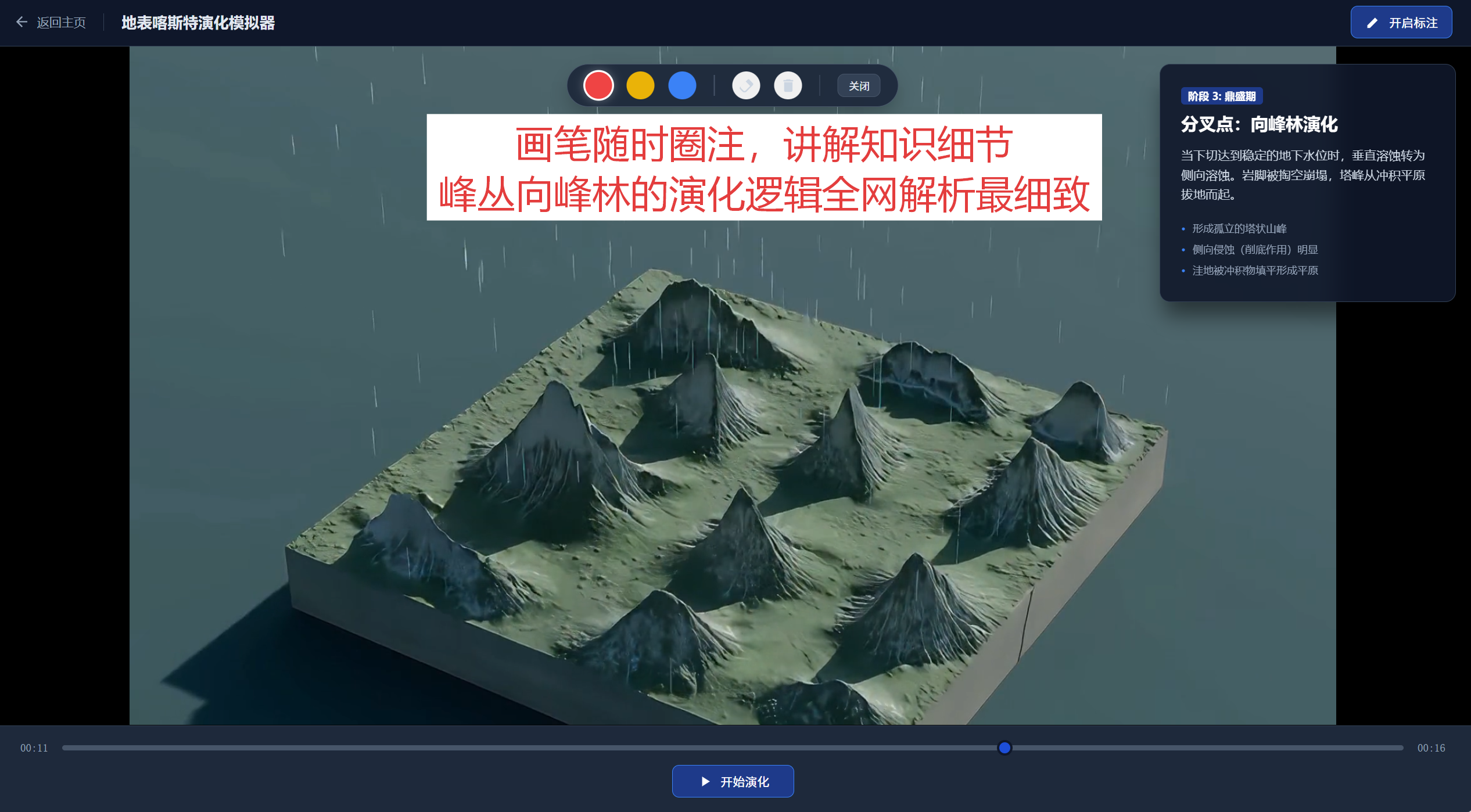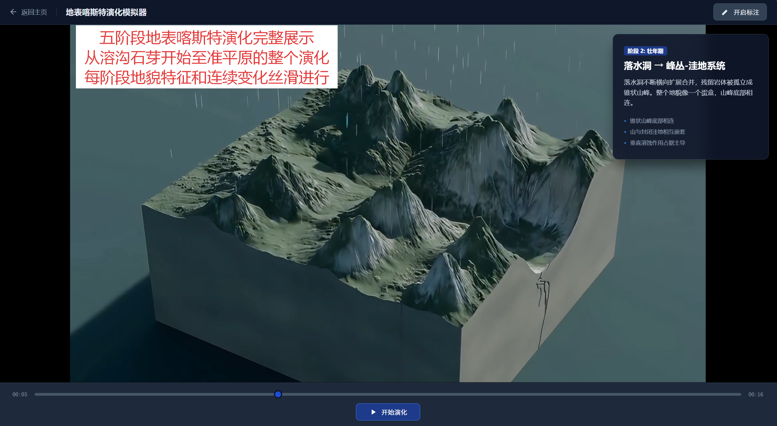 本节的主要概念是流水地貌、海岸地貌、风沙地貌和喀斯特地貌。